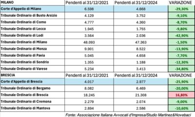 Le cause civili pendenti diminuiscono, in Lombardia spiccano Lodi e Varese